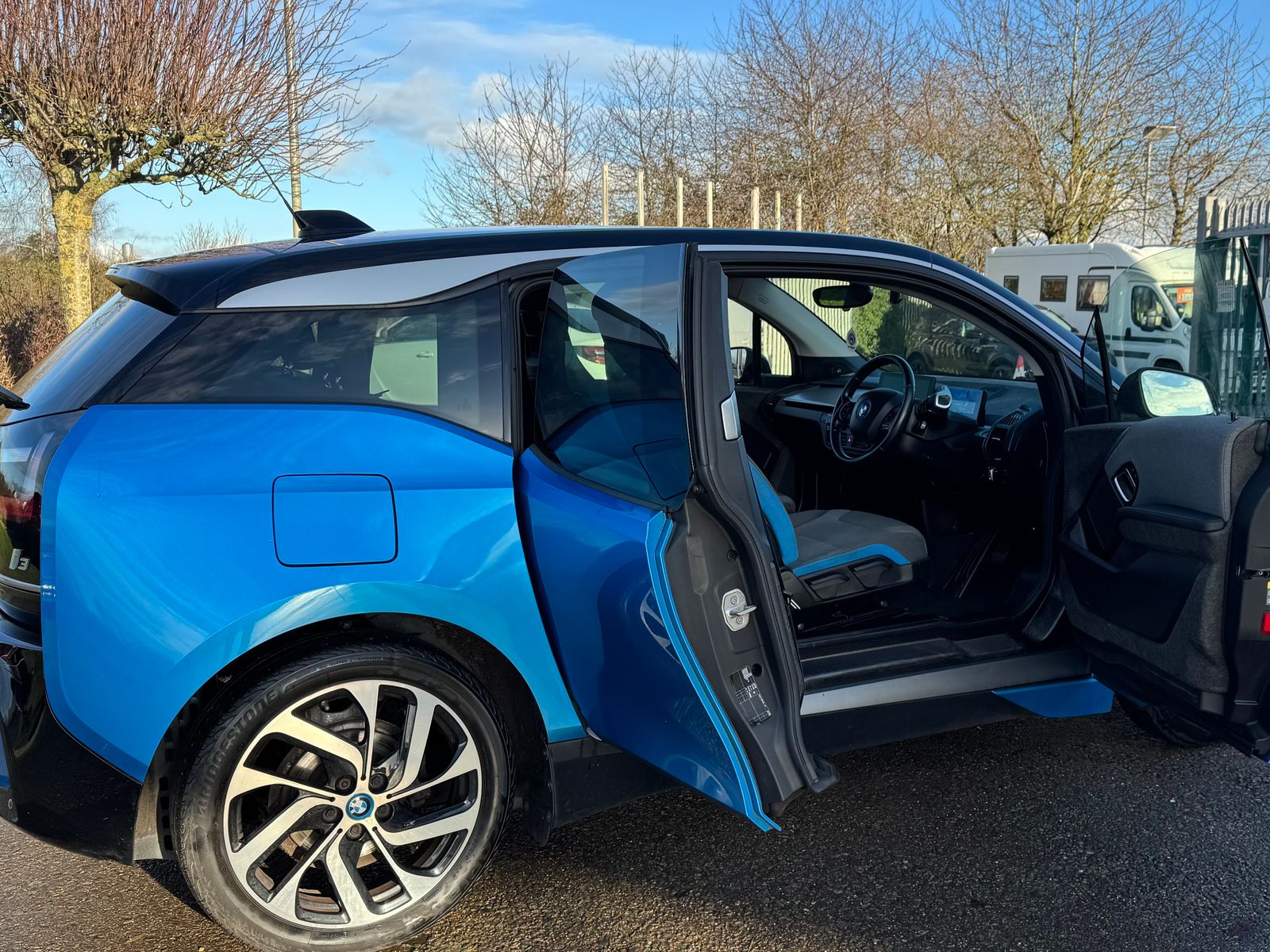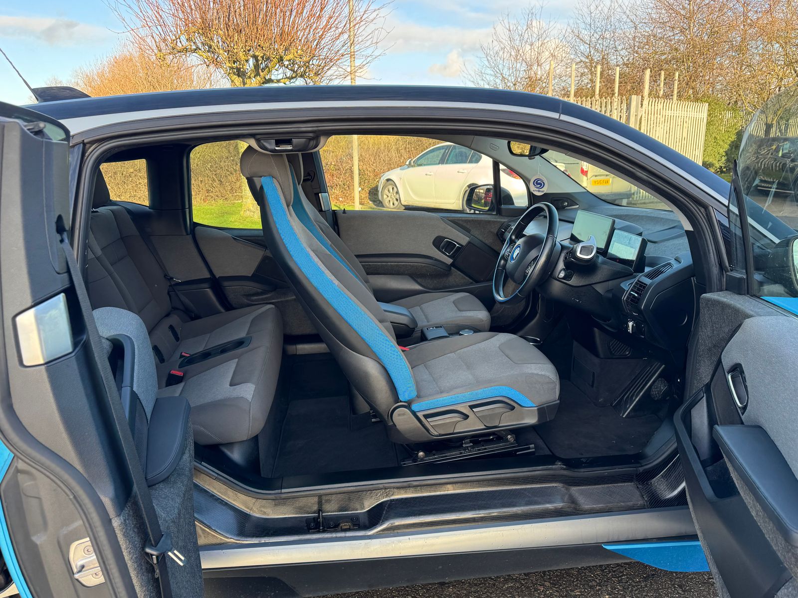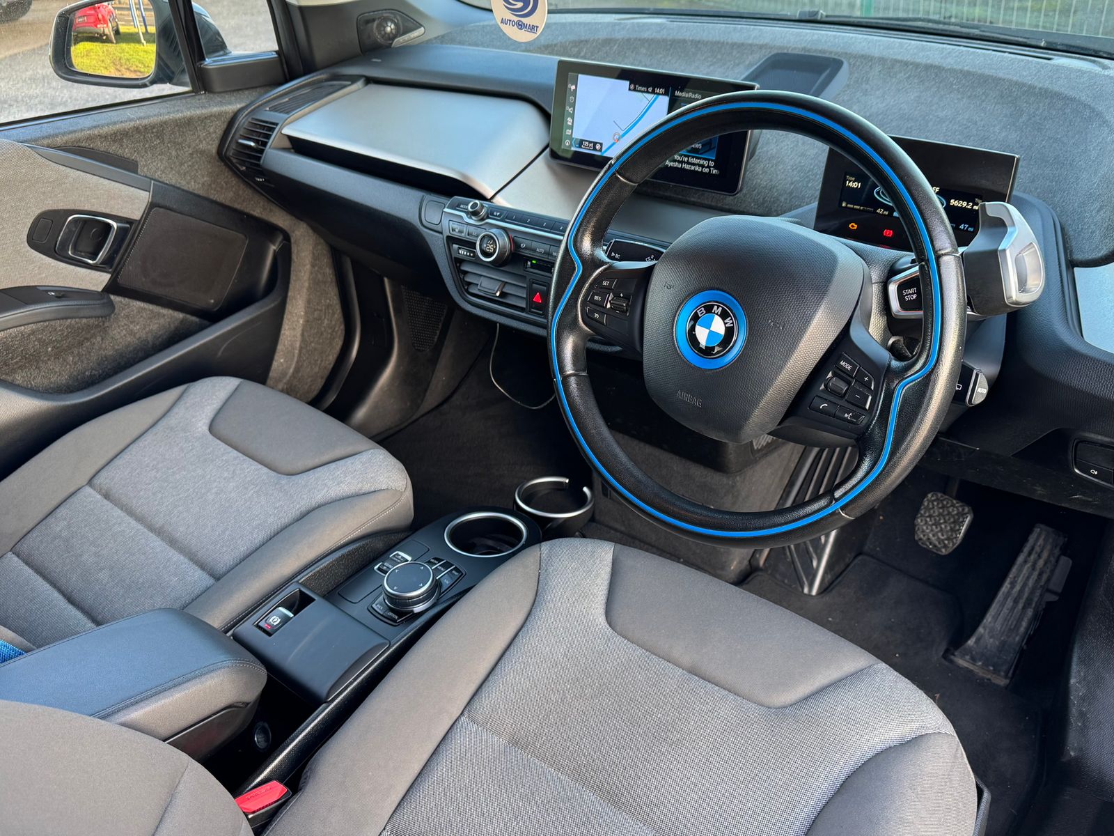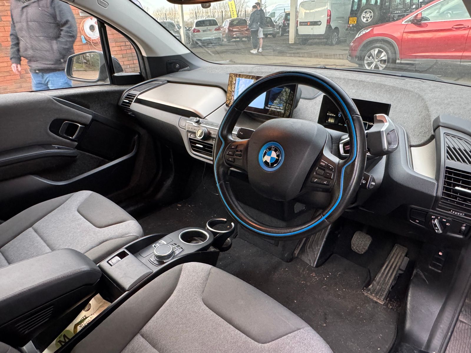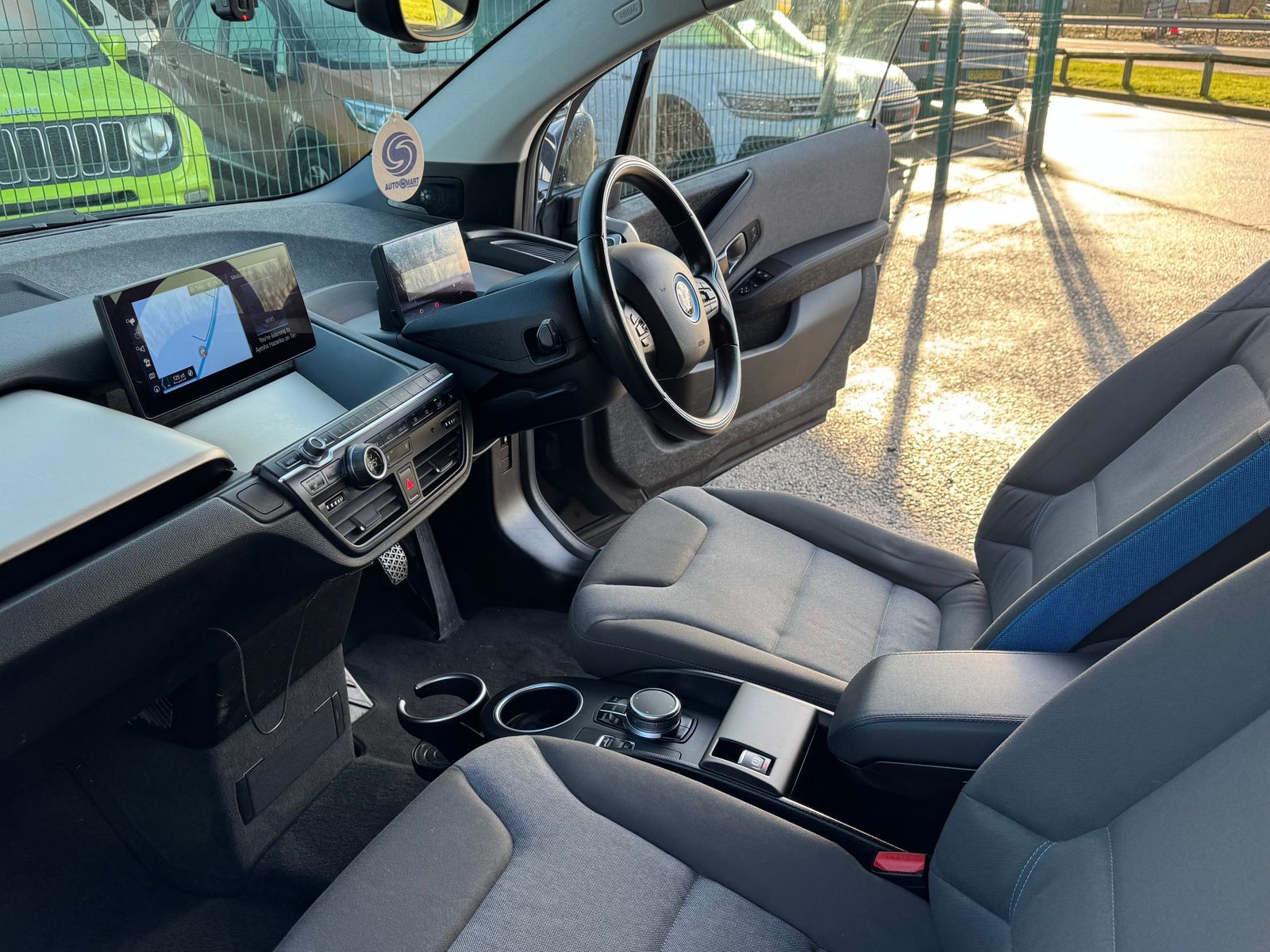 A pleasant escape from the common white, this is a great looking i3 with its factory upgraded 19in BiColour alloys contrasting against the premium metallic "Protonic Blue". Step inside and discover an interior that was truly ahead of its time. Its minimalistic design creates a spacious and modern feel, a refreshing change from typical car interiors. You'll love the unique Neutronic Cloth in Aragats Grey, accented with signature BMW i Blue details, offering a distinctive look and feel. Notice the thoughtful touch of its natural fiber door panels, a welcome departure from standard plastics, adding to its premium, eco-conscious vibe. And for the ultimate audio experience, this example comes equipped with the fantastic Harmon Kardon sound system.