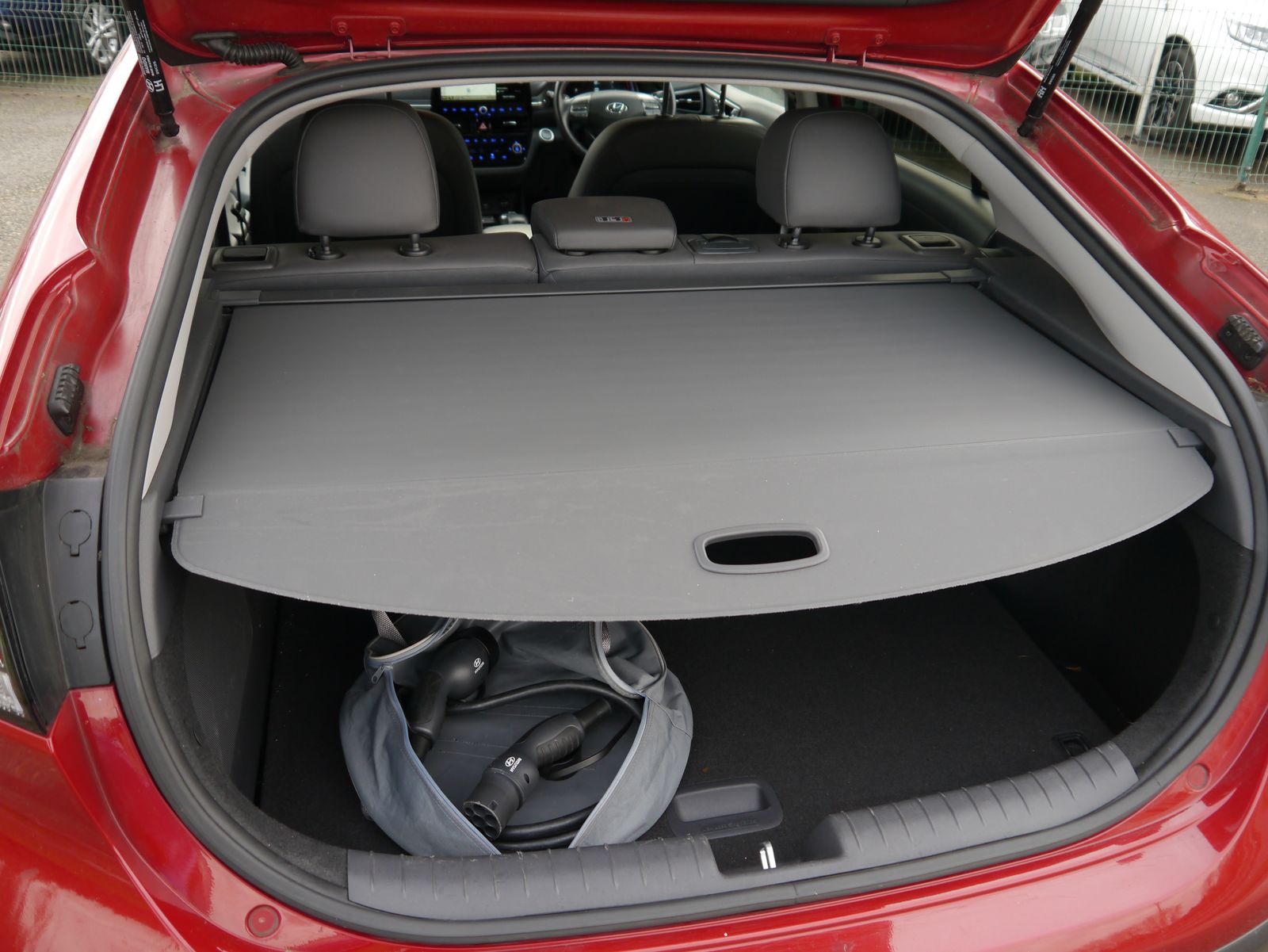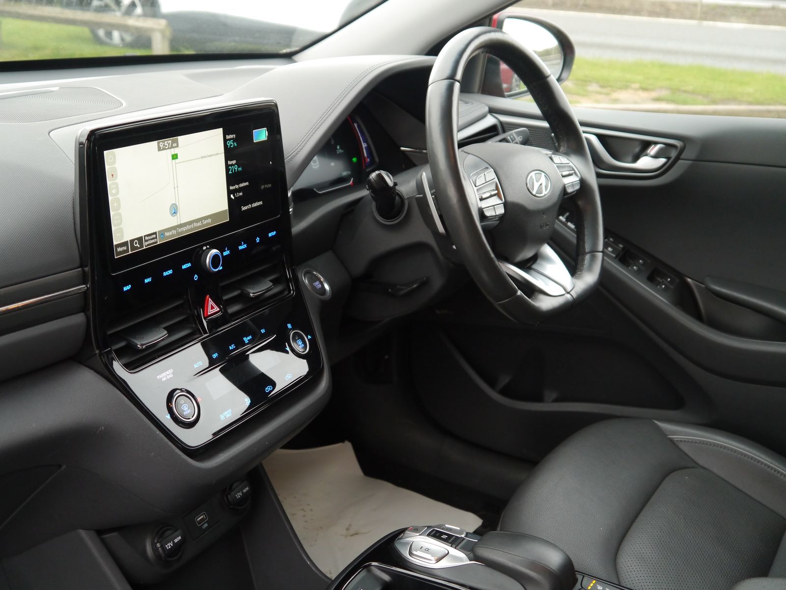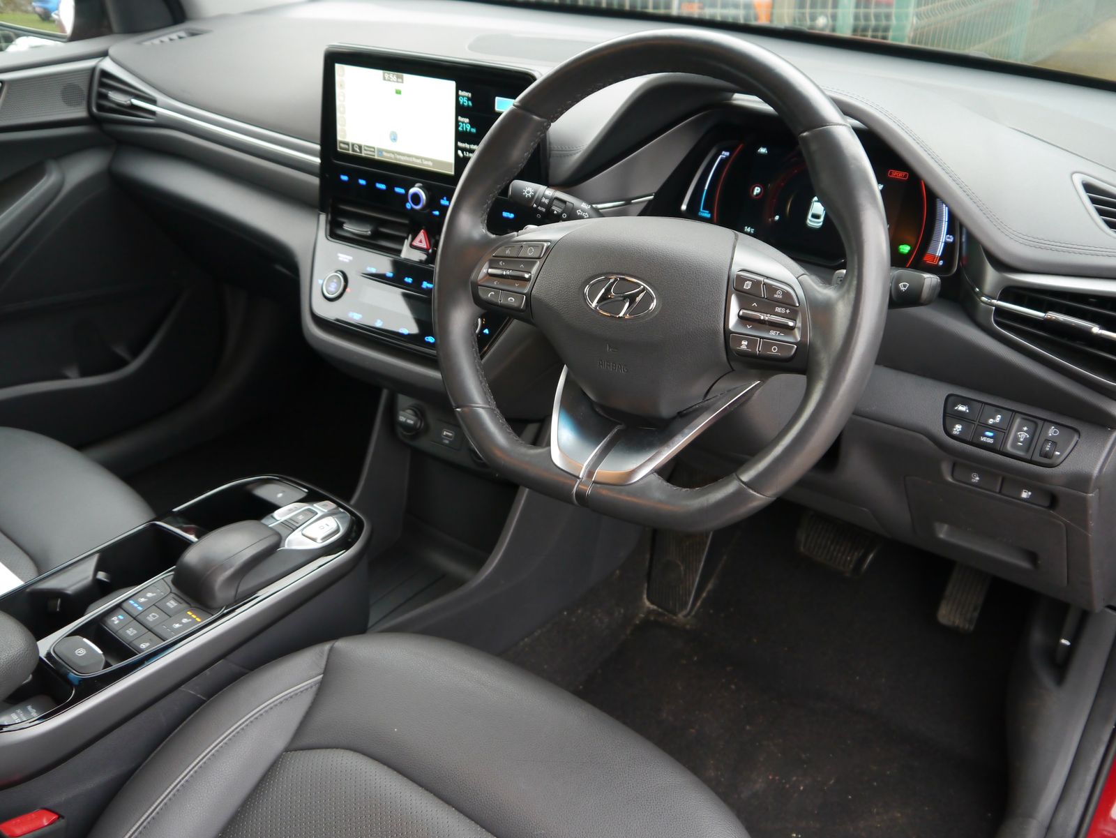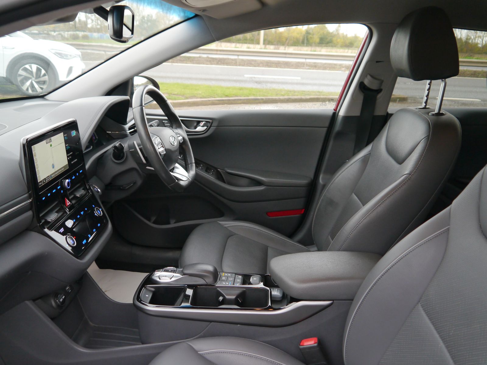 Plugging the car in onsite - the screen displays a pleasing predicted range of 219 miles. A single charge can cover more than a weeks worth of the average daily commute - public rapid charges will have the car fully topped up in less than an hour and a full charge at home will take 6 hours and 5 minutes. A nice low mileage of just 24,011 miles and a documented 4 stamp main dealer history, this impressive EV remains within its manufacture's 100,000 mile battery warranty until July 2028. Presented in Hyundai's premium "Fiery Red Metallic", its a smart looking car with its dual colour alloy wheels and grey leather interior. Being the highest trim level, the Premium SE package adds the luxuries of heated front & rear seats, driver's seat memory, and extra safety assists such as blind-spot detection with rear cross traffic alert. Its up to date with all the necessary tech for a convenient drive with features such as rear parking camera, parking sensors, dual zone climate control, keyless entry, DAB, Navigation, adaptive cruise control, and wireless phone charging. Once you have seamlessly connected your phone with Apple CarPlay or Android Auto, you can enjoy your favourite tunes flowing through the impressive factory upgraded Infinity Sound System including a subwoofer.