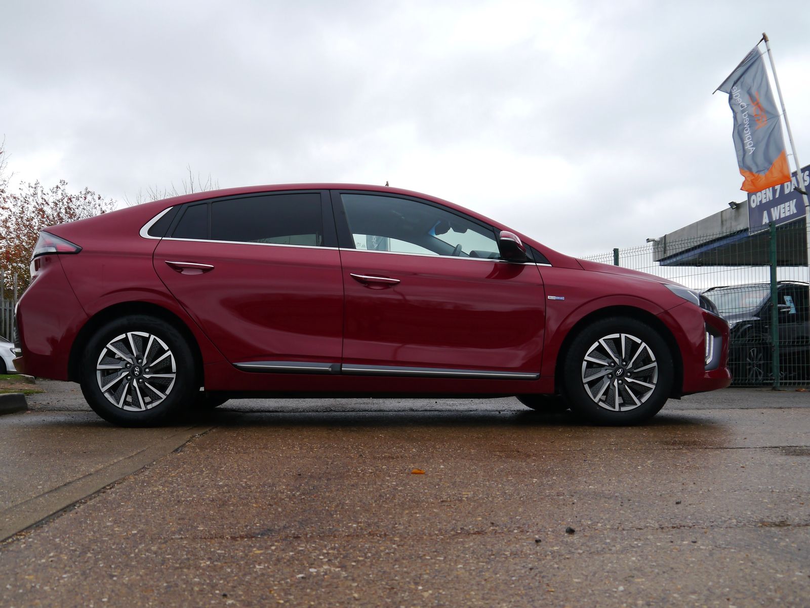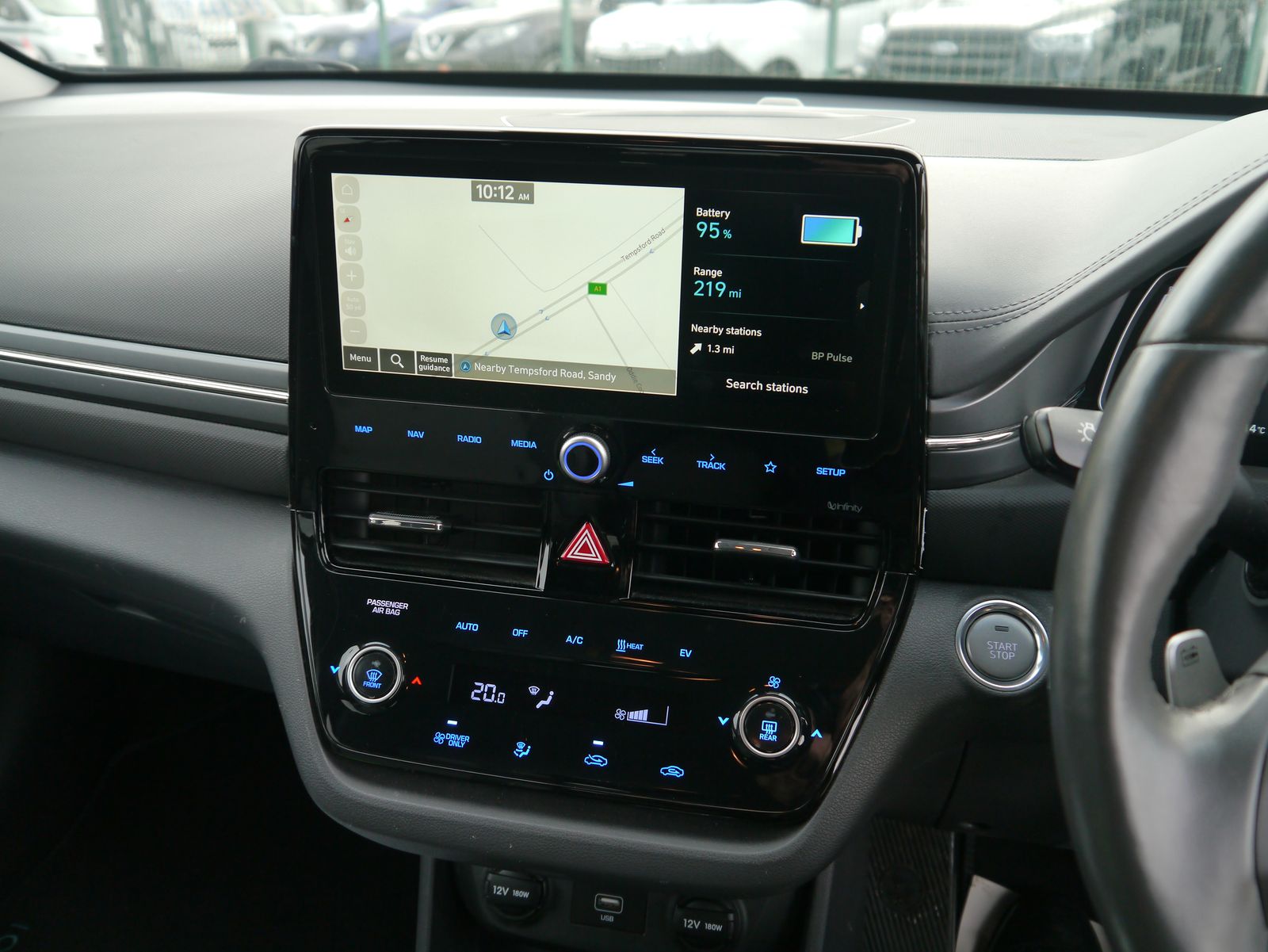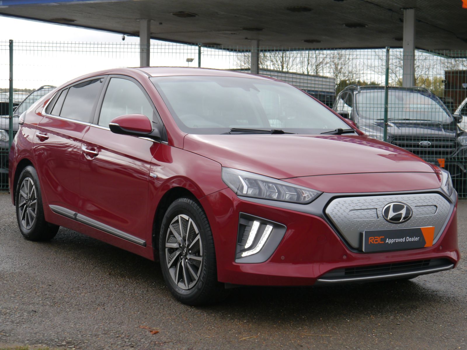 Plugging the car in onsite - the screen displays a pleasing predicted range of 219 miles. A single charge can cover more than a weeks worth of the average daily commute - public rapid charges will have the car fully topped up in less than an hour and a full charge at home will take 6 hours and 5 minutes. A nice low mileage of just 24,011 miles and a documented 4 stamp main dealer history, this impressive EV remains within its manufacture's 100,000 mile battery warranty until July 2028. Presented in Hyundai's premium "Fiery Red Metallic", its a smart looking car with its dual colour alloy wheels and grey leather interior. Being the highest trim level, the Premium SE package adds the luxuries of heated front & rear seats, driver's seat memory, and extra safety assists such as blind-spot detection with rear cross traffic alert. Its up to date with all the necessary tech for a convenient drive with features such as rear parking camera, parking sensors, dual zone climate control, keyless entry, DAB, Navigation, adaptive cruise control, and wireless phone charging. Once you have seamlessly connected your phone with Apple CarPlay or Android Auto, you can enjoy your favourite tunes flowing through the impressive factory upgraded Infinity Sound System including a subwoofer.