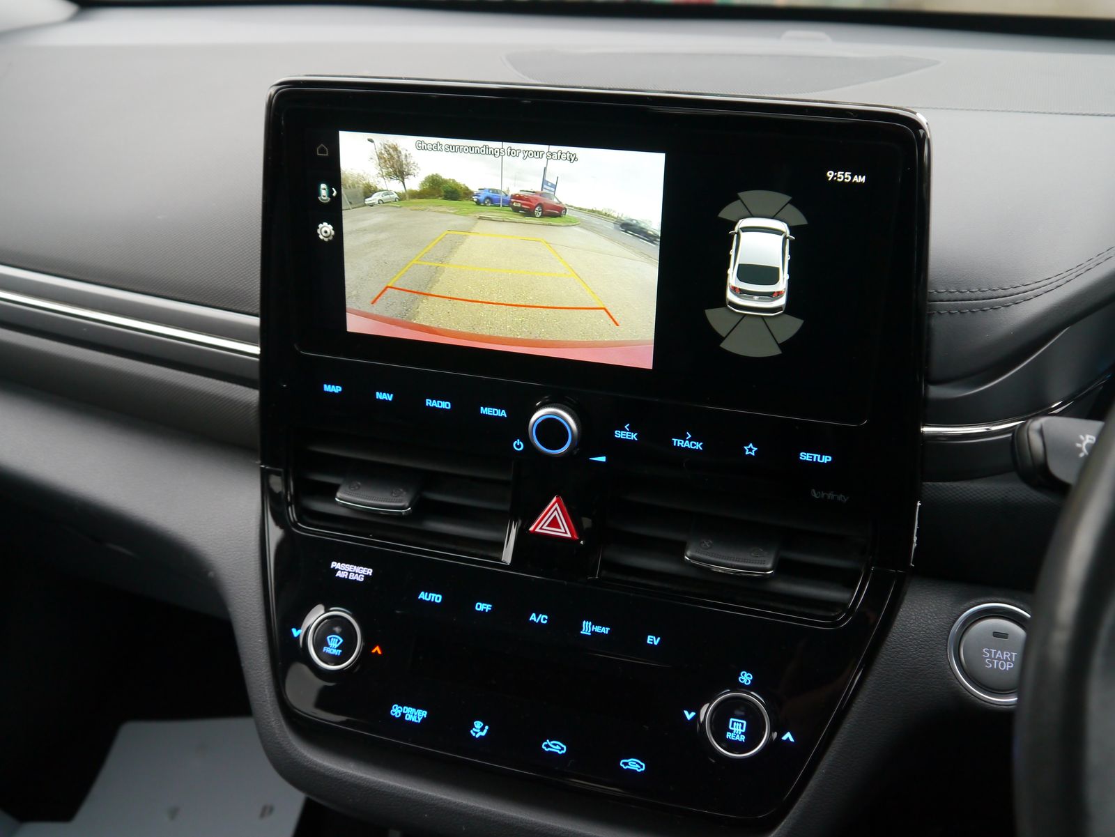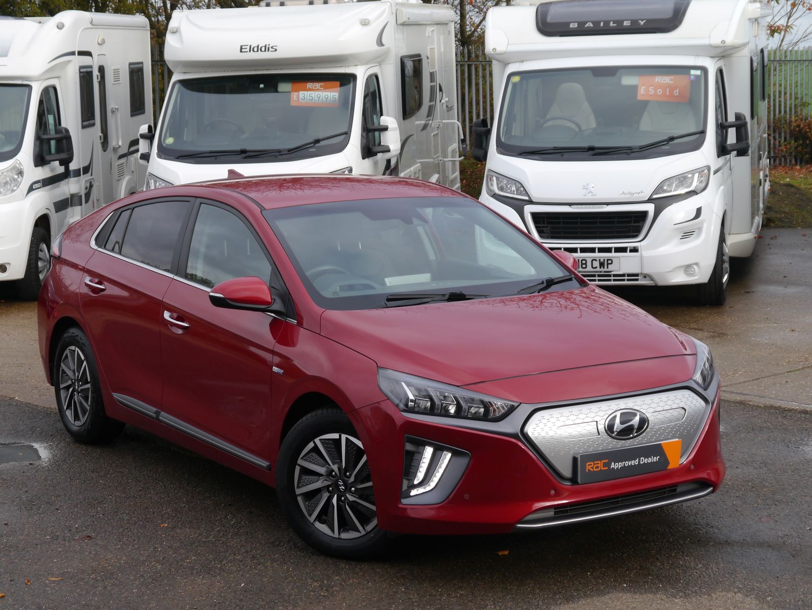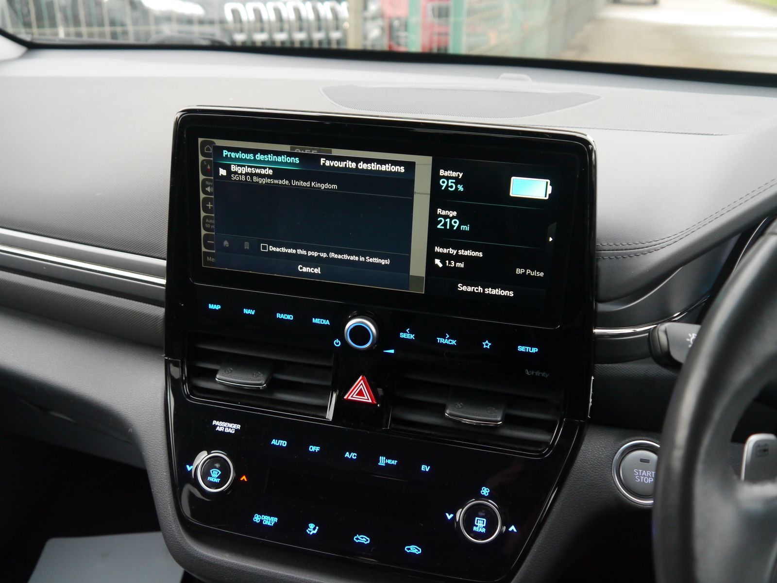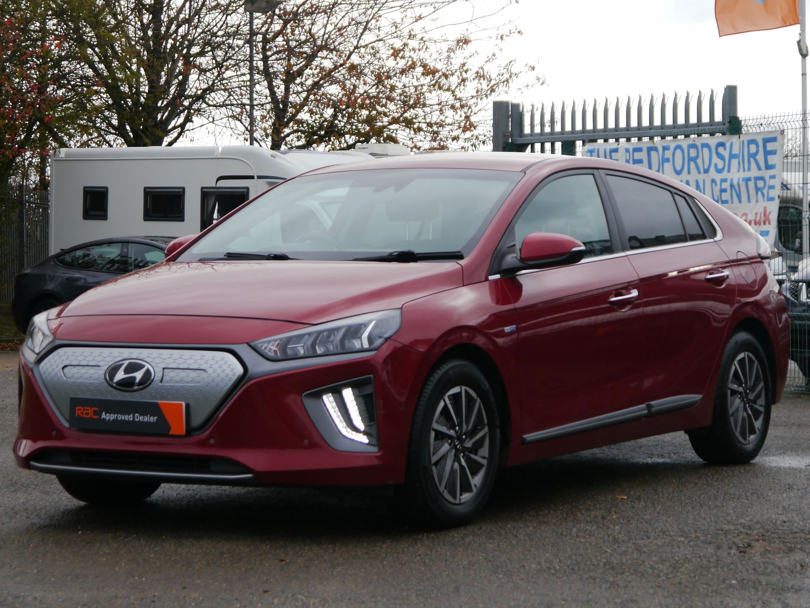 Plugging the car in onsite - the screen displays a pleasing predicted range of 219 miles. A single charge can cover more than a weeks worth of the average daily commute - public rapid charges will have the car fully topped up in less than an hour and a full charge at home will take 6 hours and 5 minutes. A nice low mileage of just 24,011 miles and a documented 4 stamp main dealer history, this impressive EV remains within its manufacture's 100,000 mile battery warranty until July 2028. Presented in Hyundai's premium "Fiery Red Metallic", its a smart looking car with its dual colour alloy wheels and grey leather interior. Being the highest trim level, the Premium SE package adds the luxuries of heated front & rear seats, driver's seat memory, and extra safety assists such as blind-spot detection with rear cross traffic alert. Its up to date with all the necessary tech for a convenient drive with features such as rear parking camera, parking sensors, dual zone climate control, keyless entry, DAB, Navigation, adaptive cruise control, and wireless phone charging. Once you have seamlessly connected your phone with Apple CarPlay or Android Auto, you can enjoy your favourite tunes flowing through the impressive factory upgraded Infinity Sound System including a subwoofer.
