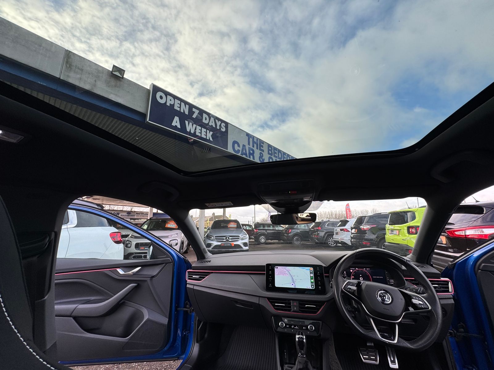 Complete with a nice selection of factory options and costing over £31k when new, this 2024 Skoda Scala TSI Monte Carlo presents an exceptional opportunity with its remarkably low mileage of just 8500 miles. This Euro 6 compliant hatchback is powered by an efficient 114 bhp, 1.0 litre petrol engine, offering a smooth and responsive driving experience couples with it’s 7 speed automatic transmission. The Monte Carlo trim level enhances its sporty appeal, and it comes equipped with the desirable Assisted Drive Package, featuring adaptive cruise control for effortless journeys. Convenience is further boosted by the Charging Pack, which includes wireless phone charging, and the Keyless Entry and Start Stop System. Automatic headlights and dual zone climate control ensure comfort and ease of use in all conditions. With its panoramic roof, widescreen navigation with reversing camera, this is clearly a well appointed vehicle.