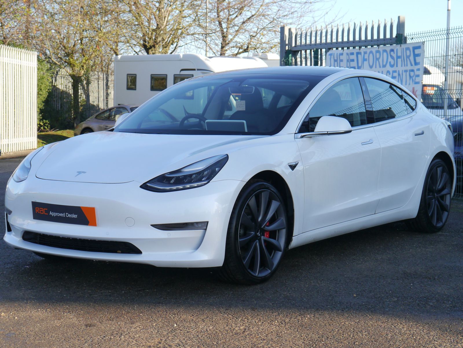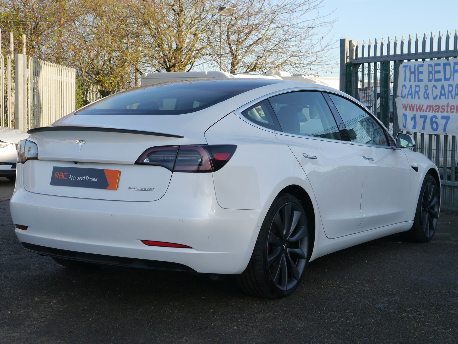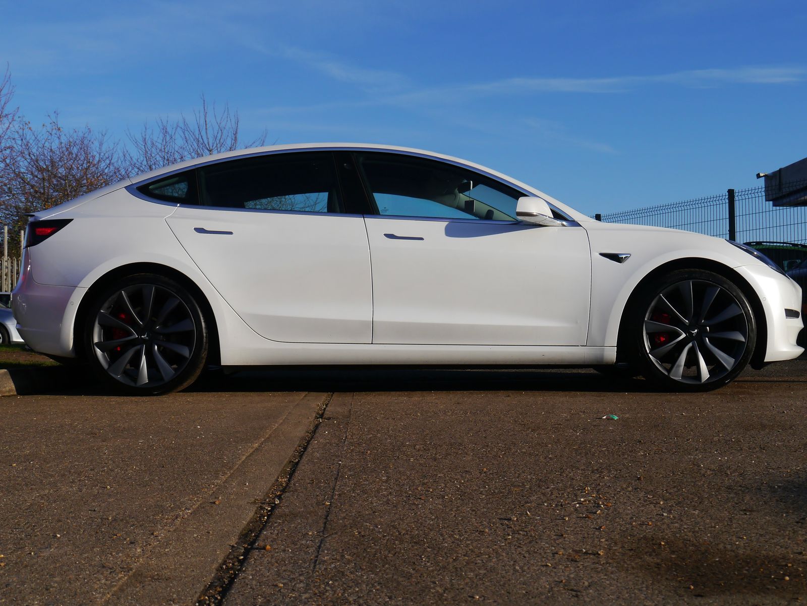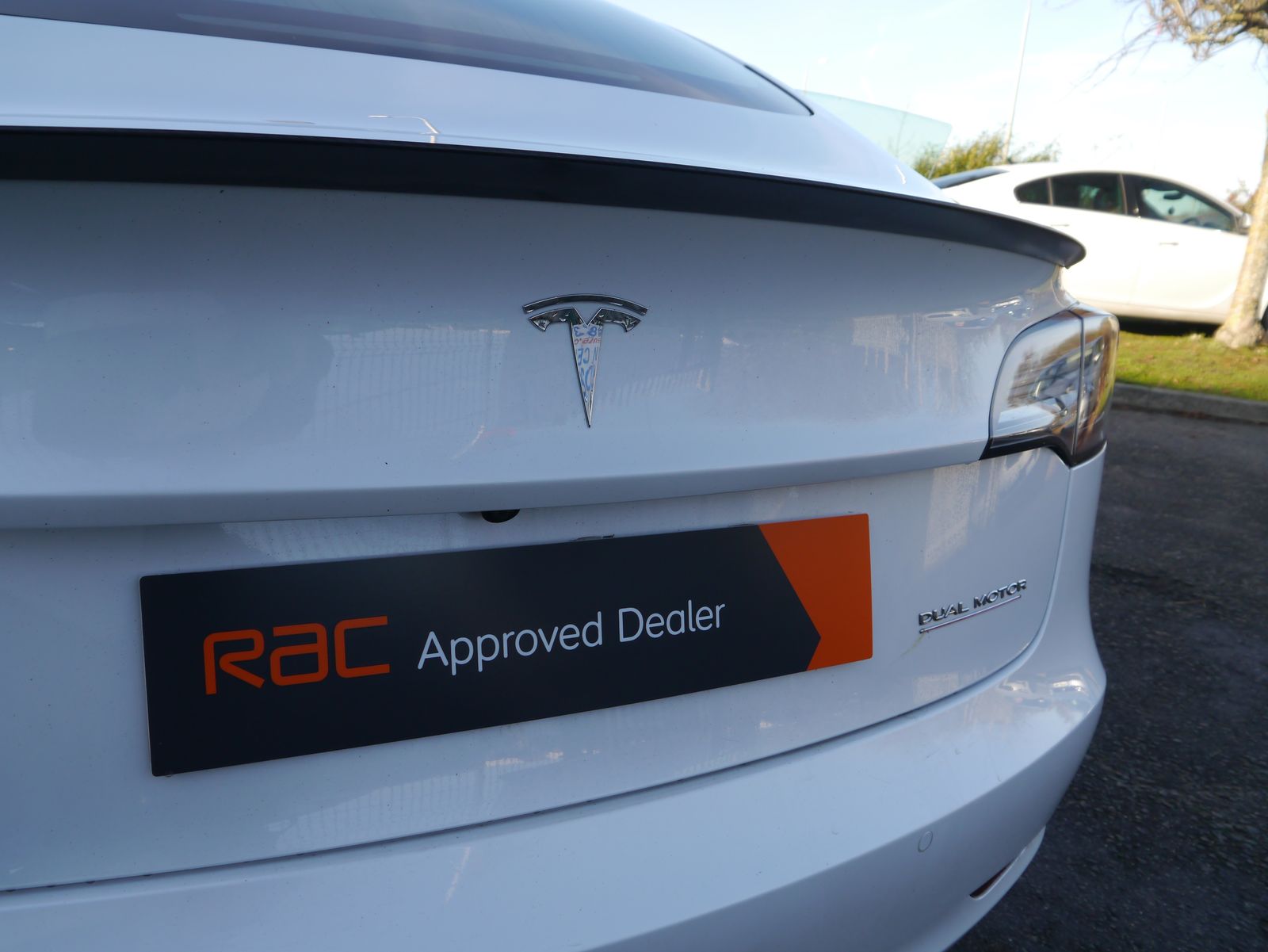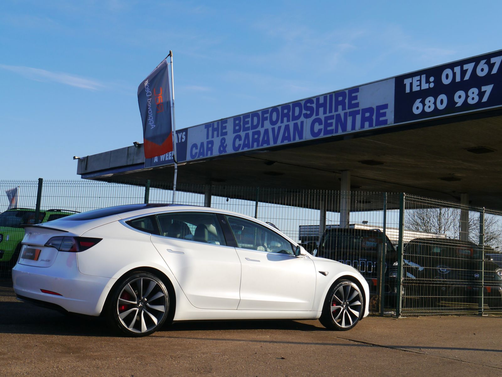 This 70 Plate Tesla Model 3 Performance is a superb example, kept in first class condition with just one previous on it’s registration document. Averaging less than 10,000 miles per year, this car is still fresh and has the reassurance of manufacturers battery and drive unit warranty until 30th September 2028 120,000 miles. As the AWD Long Range Performance model its a cut above the rest with its premium, sleek pearl white paint finish contrasting well with its 20” Grey performance alloy wheels. Red brake callipers and discrete carbon fibre rear spoiler giving clues to this car’s outstanding performance credentials! As an all electric vehicle, it boasts a substantial 82 kWh battery, offering an impressive maximum range of 329 miles when new. The four wheel drive configuration provides a dynamic driving experience, complemented by a suite of advanced features including ‘Track Mode’ and Autopilot. All round parking sensors and a park assist camera help with effortless manoeuvring, keyless entry with app control for ultimate convenience, and inductive charging mats to keep two smartphones powered up wirelessly. Adaptive cruise control further enhances the driving experience, making longer journeys more relaxed. Heated seats front and rear as well as climate controlled air conditioning make for a comfortable drive whatever the season.
