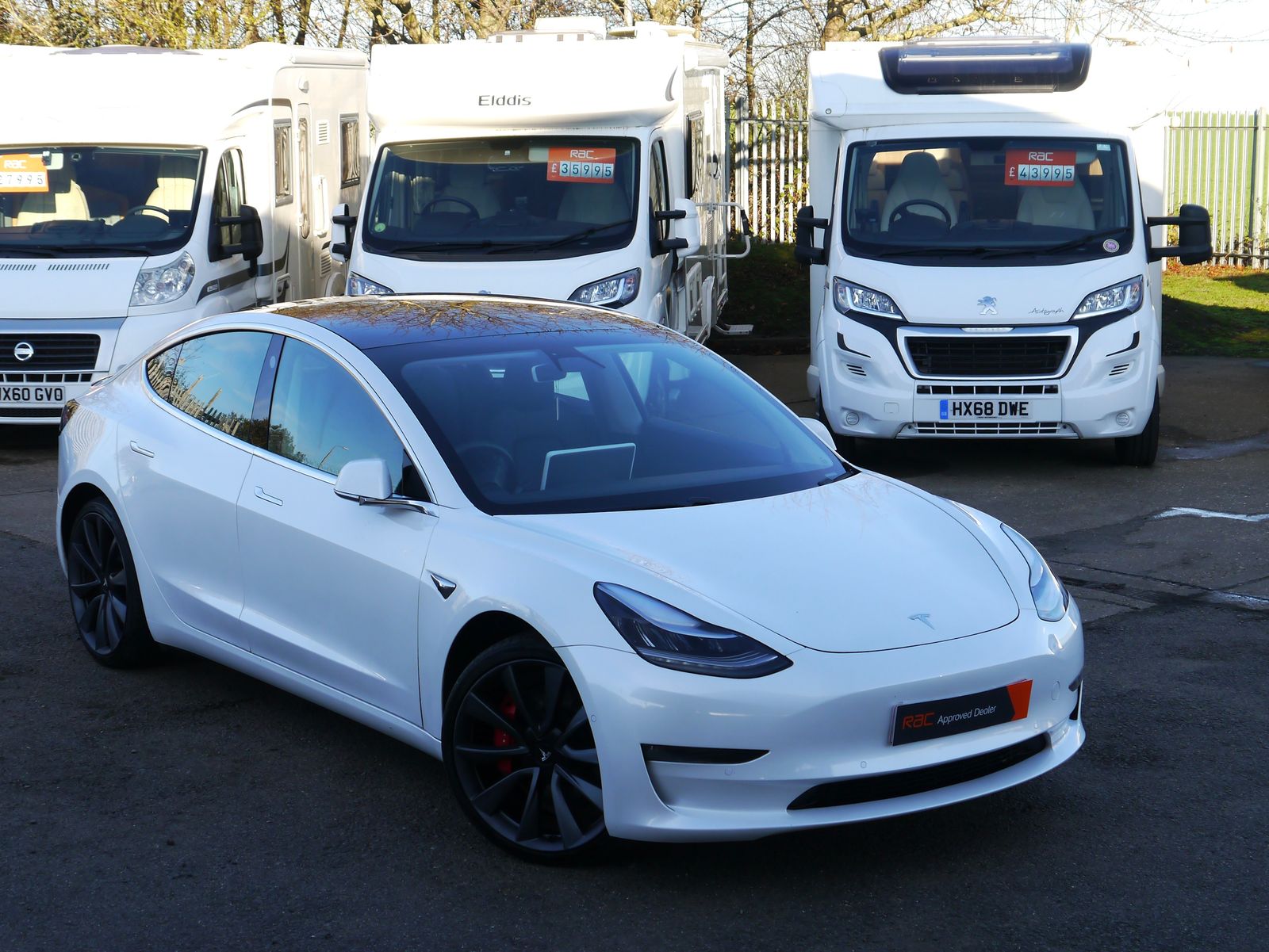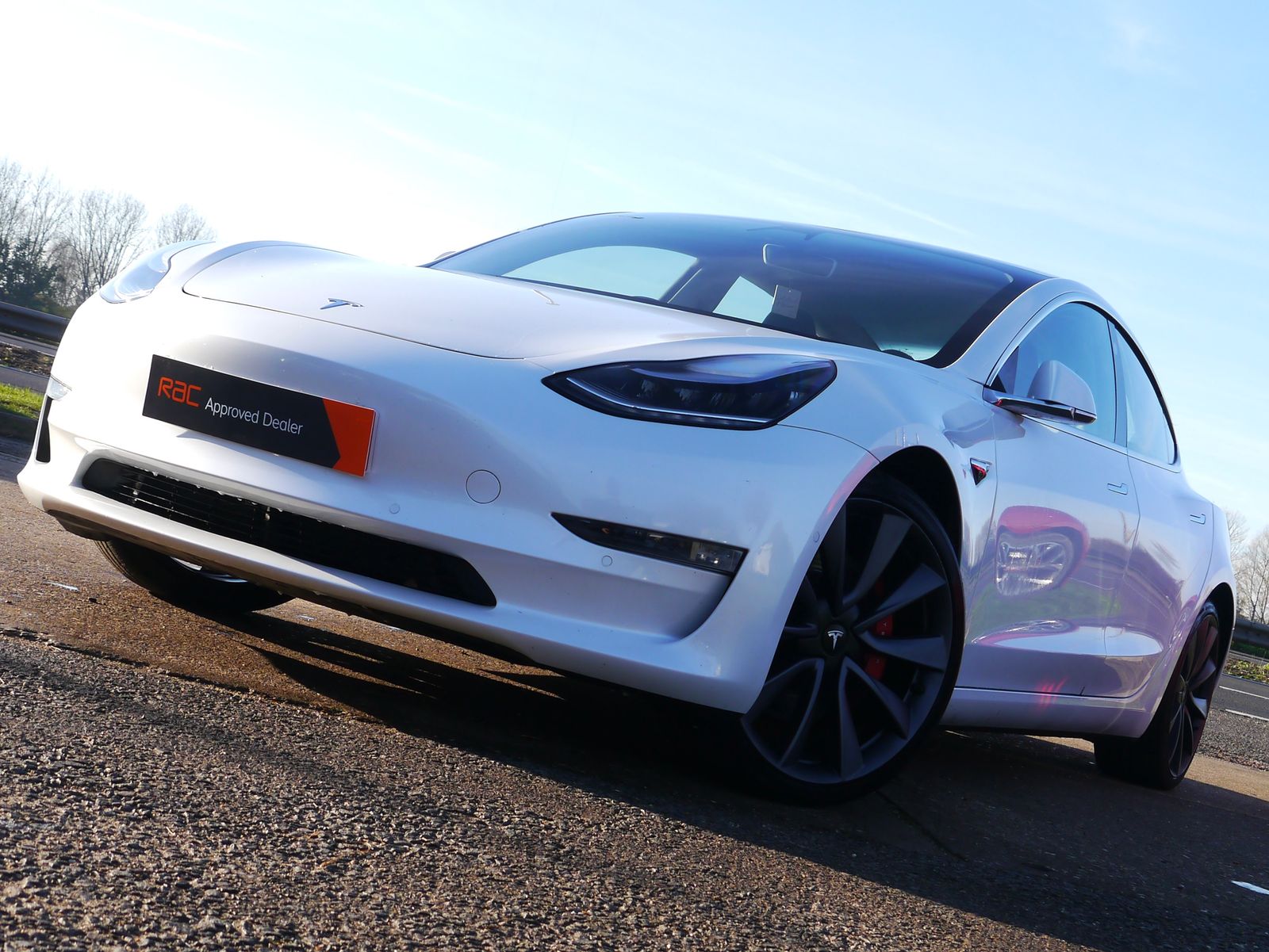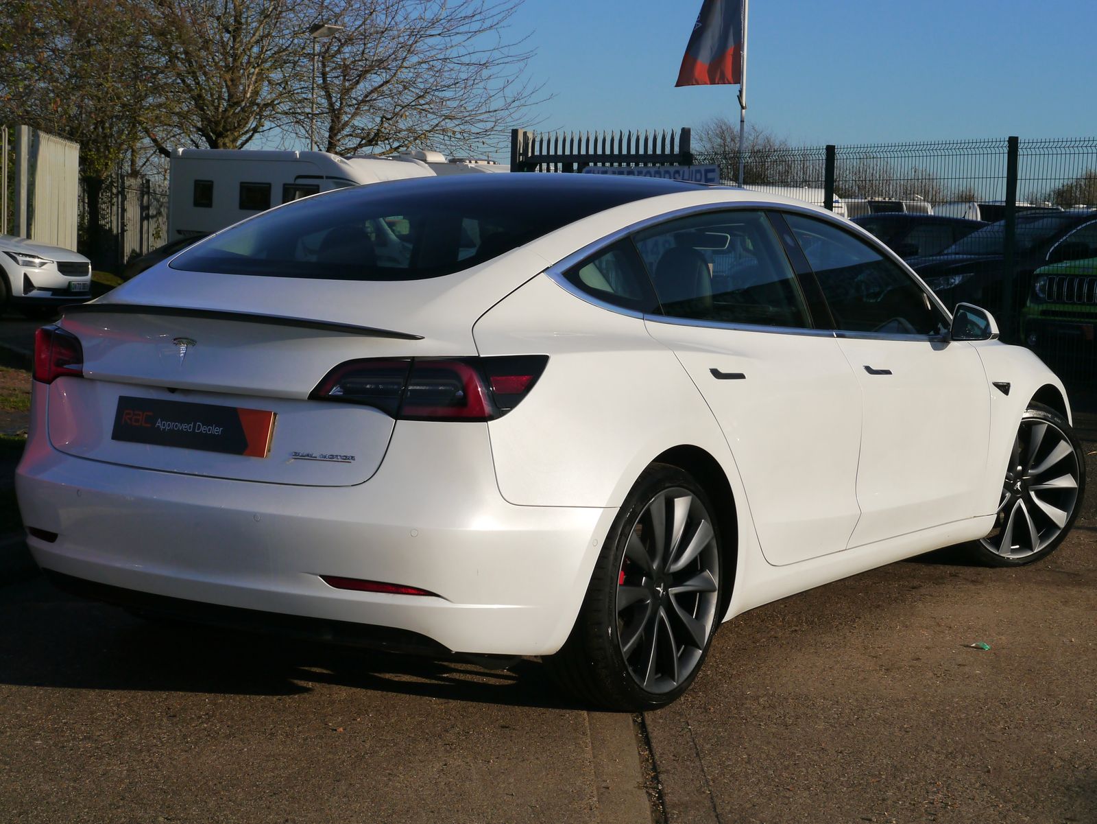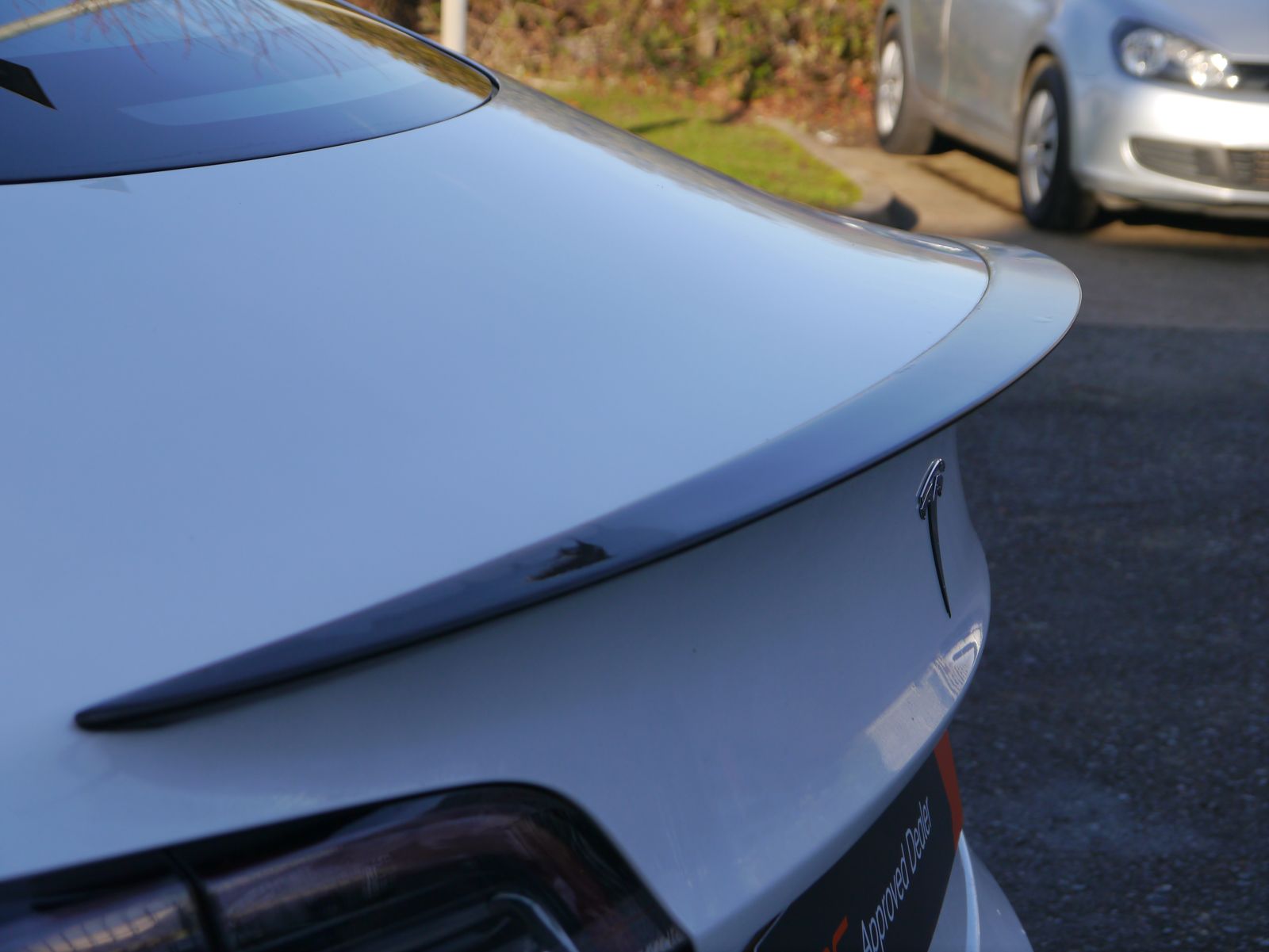 This 70 Plate Tesla Model 3 Performance is a superb example, kept in first class condition with just one previous on it’s registration document. Averaging less than 10,000 miles per year, this car is still fresh and has the reassurance of manufacturers battery and drive unit warranty until 30th September 2028 120,000 miles. As the AWD Long Range Performance model its a cut above the rest with its premium, sleek pearl white paint finish contrasting well with its 20” Grey performance alloy wheels. Red brake callipers and discrete carbon fibre rear spoiler giving clues to this car’s outstanding performance credentials! As an all electric vehicle, it boasts a substantial 82 kWh battery, offering an impressive maximum range of 329 miles when new. The four wheel drive configuration provides a dynamic driving experience, complemented by a suite of advanced features including ‘Track Mode’ and Autopilot. All round parking sensors and a park assist camera help with effortless manoeuvring, keyless entry with app control for ultimate convenience, and inductive charging mats to keep two smartphones powered up wirelessly. Adaptive cruise control further enhances the driving experience, making longer journeys more relaxed. Heated seats front and rear as well as climate controlled air conditioning make for a comfortable drive whatever the season.