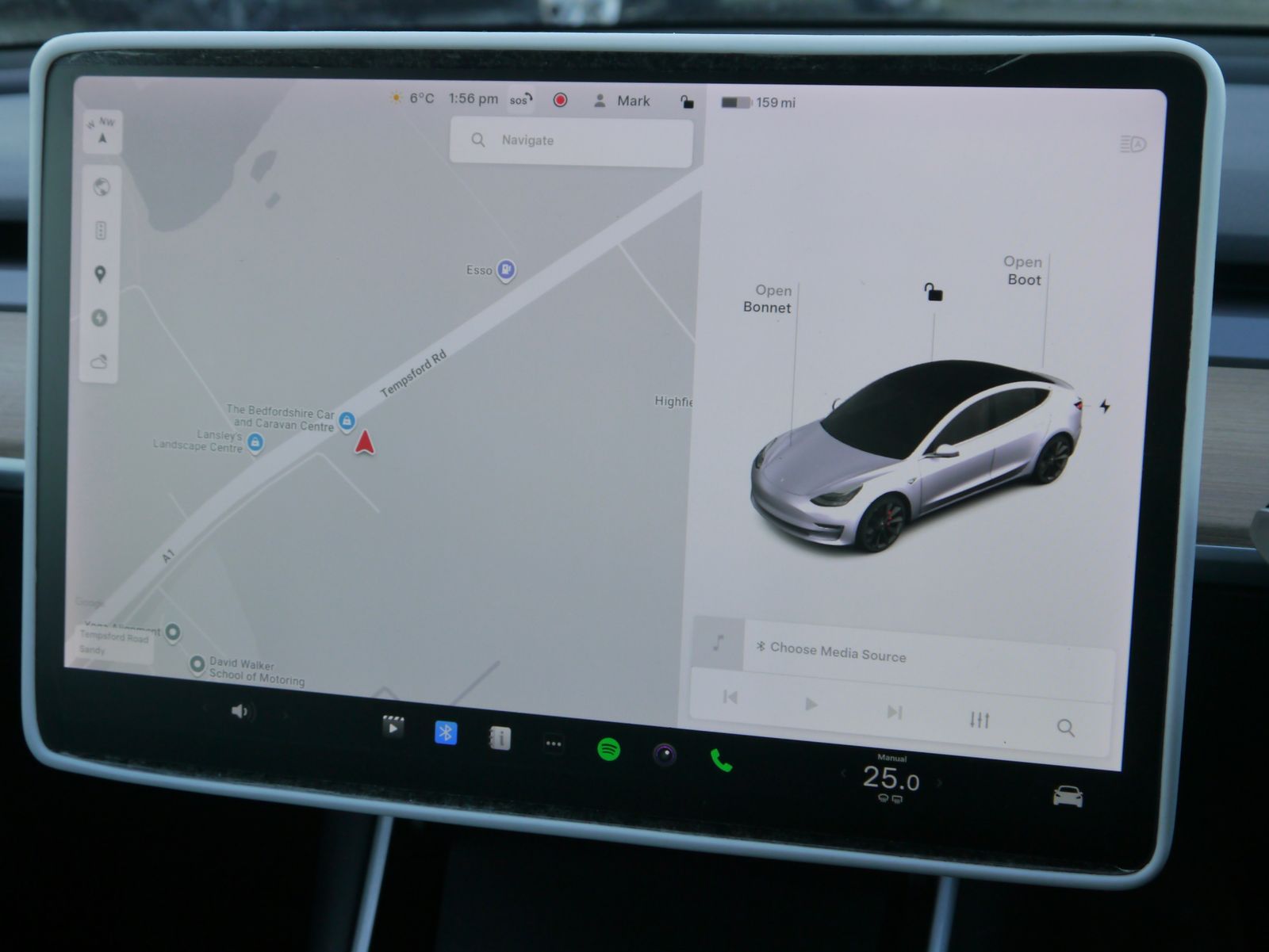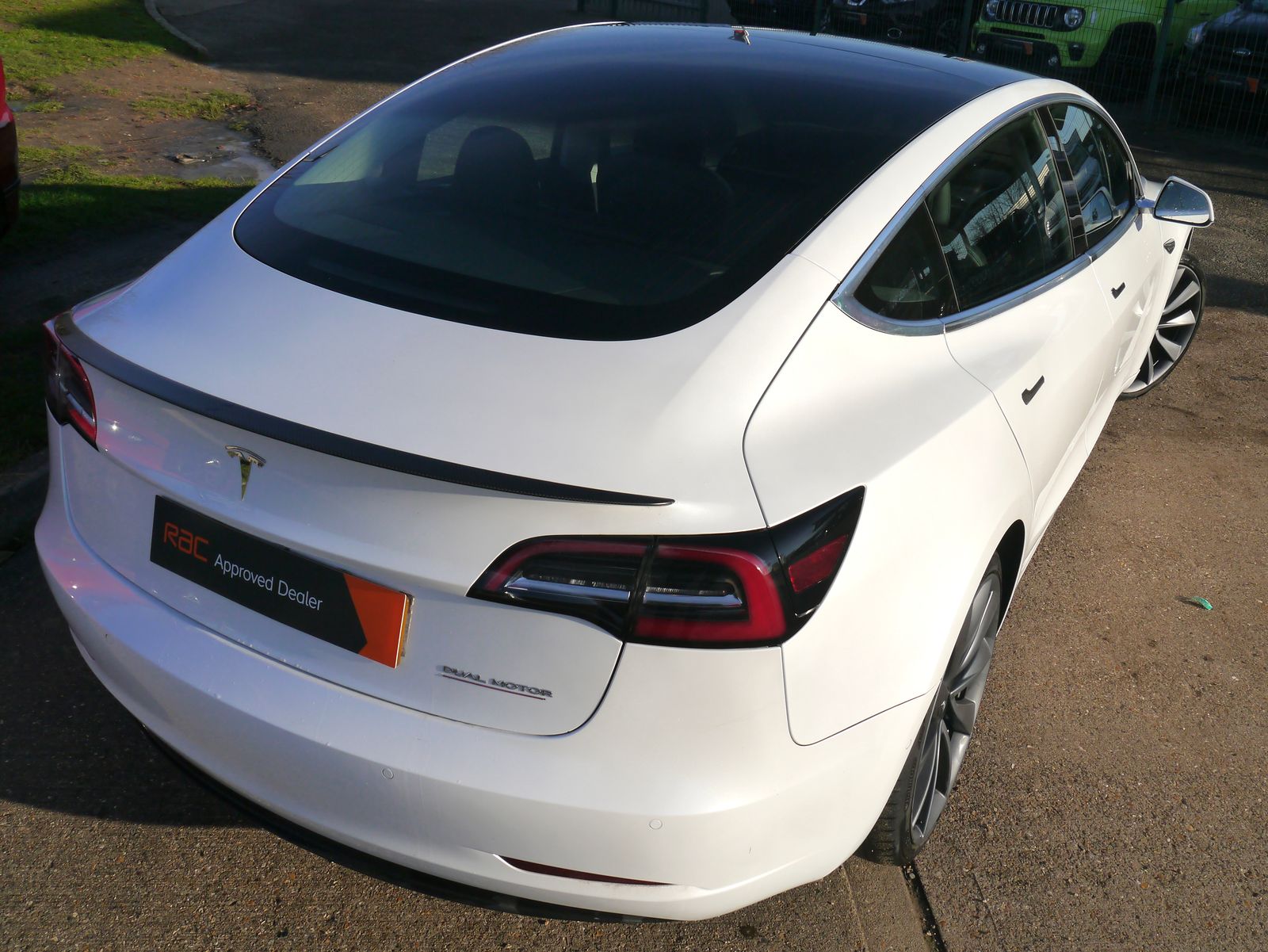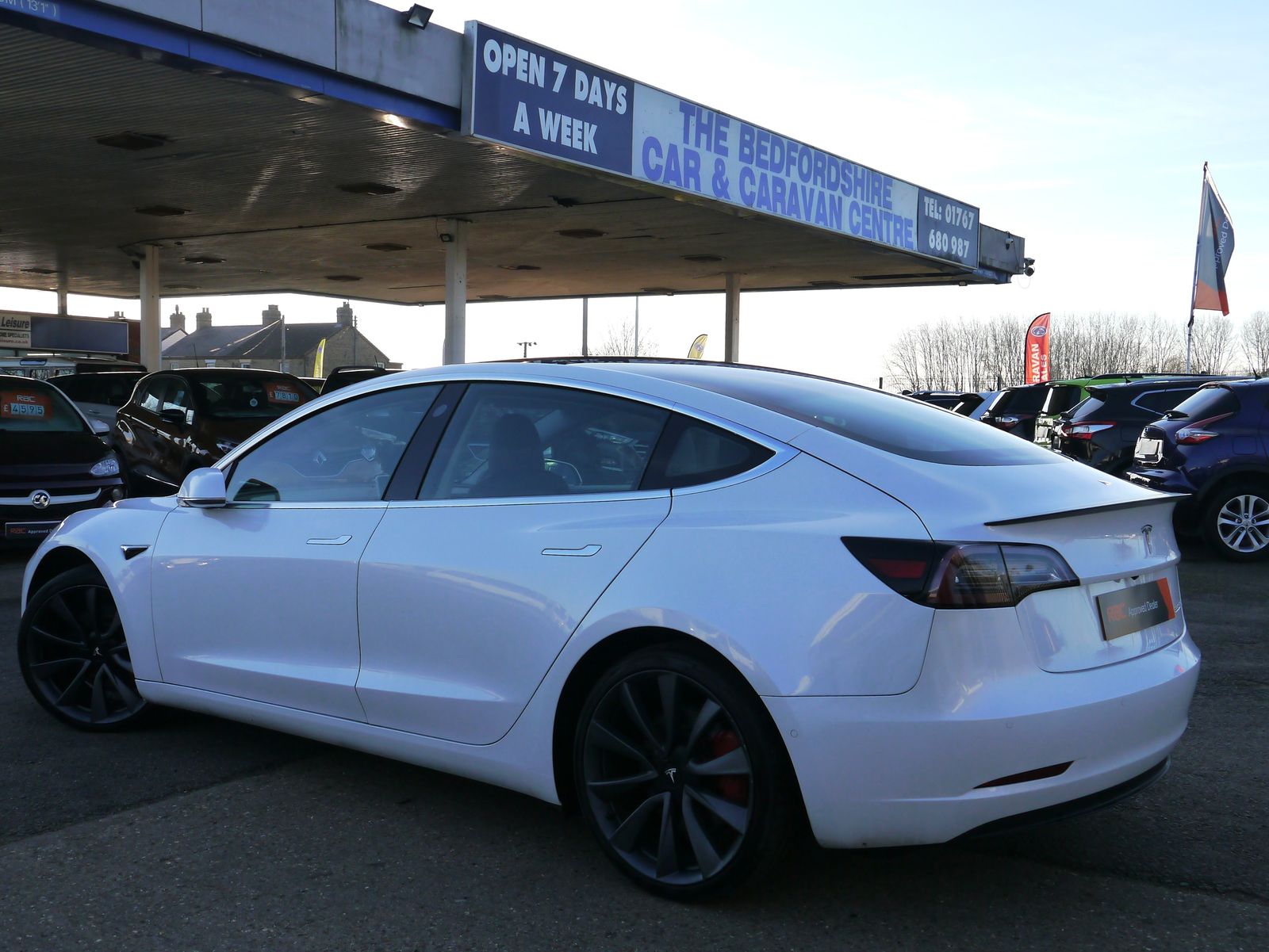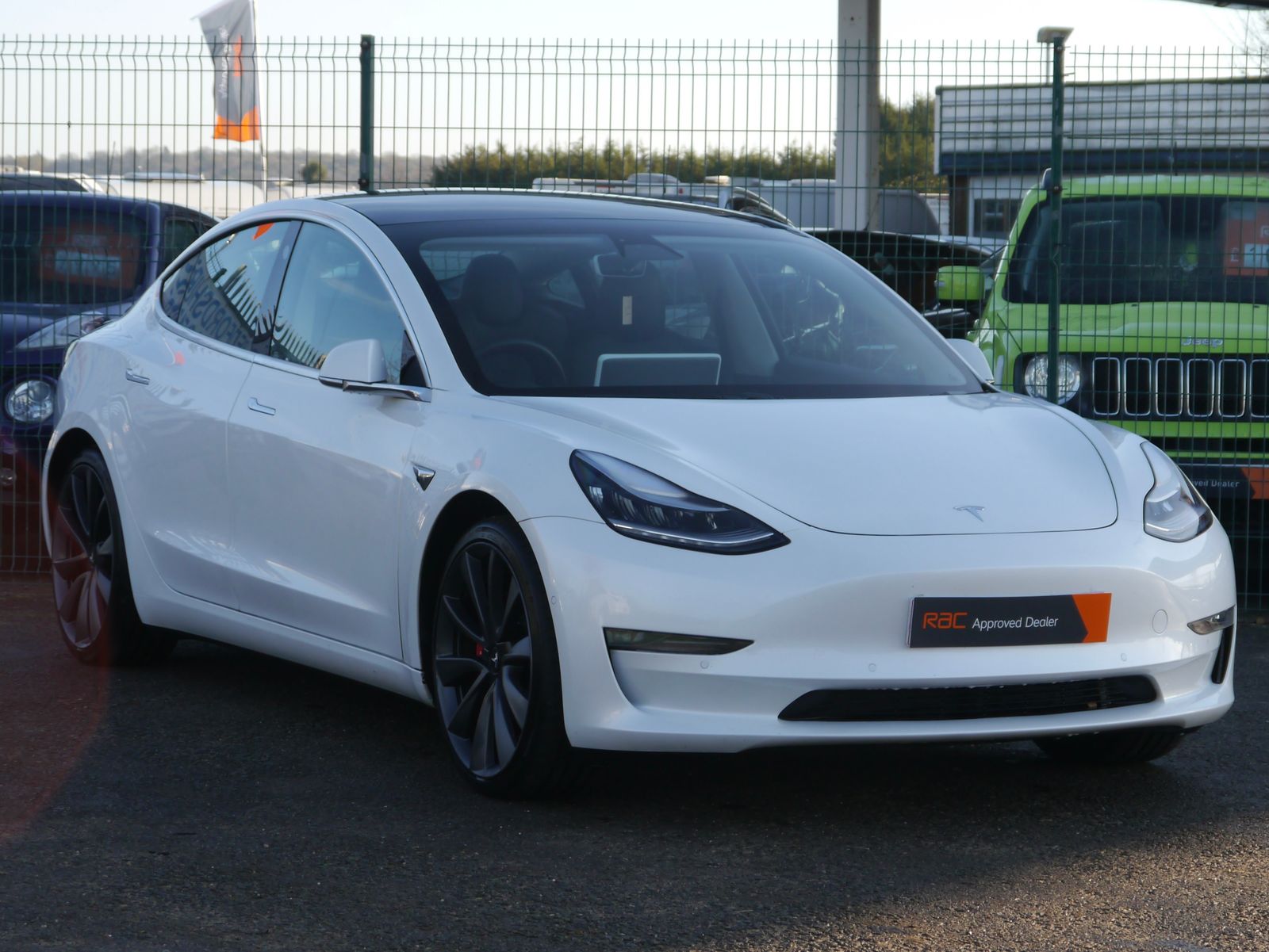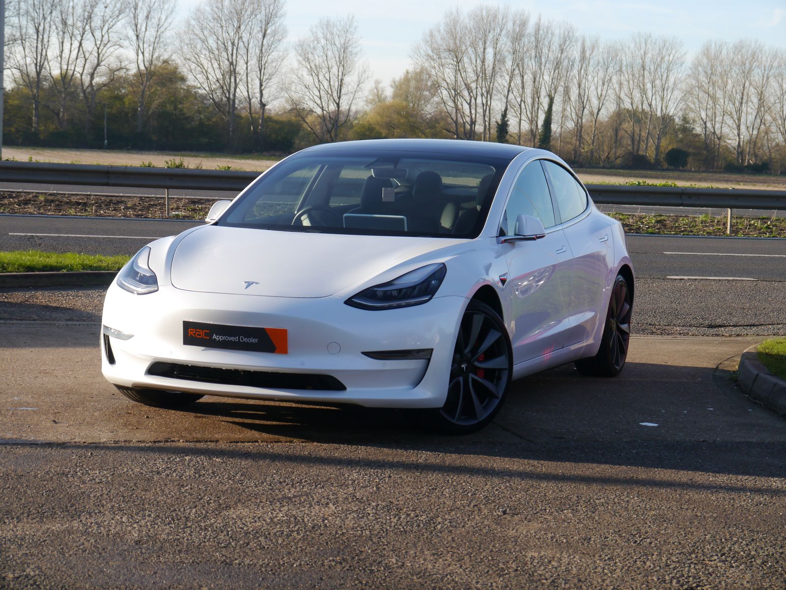 This 70 Plate Tesla Model 3 Performance is a superb example, kept in first class condition with just one previous on it’s registration document. Averaging less than 10,000 miles per year, this car is still fresh and has the reassurance of manufacturers battery and drive unit warranty until 30th September 2028 120,000 miles. As the AWD Long Range Performance model its a cut above the rest with its premium, sleek pearl white paint finish contrasting well with its 20” Grey performance alloy wheels. Red brake callipers and discrete carbon fibre rear spoiler giving clues to this car’s outstanding performance credentials! As an all electric vehicle, it boasts a substantial 82 kWh battery, offering an impressive maximum range of 329 miles when new. The four wheel drive configuration provides a dynamic driving experience, complemented by a suite of advanced features including ‘Track Mode’ and Autopilot. All round parking sensors and a park assist camera help with effortless manoeuvring, keyless entry with app control for ultimate convenience, and inductive charging mats to keep two smartphones powered up wirelessly. Adaptive cruise control further enhances the driving experience, making longer journeys more relaxed. Heated seats front and rear as well as climate controlled air conditioning make for a comfortable drive whatever the season.